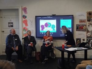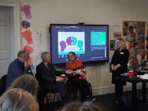 The Education Room in the State Apartments at Dublin Castle on recent Wednesdays is a very lively space. On a particularly cold morning, as tours of the apartments run outside and the ticket desk buzzes, Frank and Jackie Golden chat to the group gathered about how Frank’s dementia affects them and how having access to cultural experiences like Azure tours add to their lives. Frank tells the group they offer him ‘stimulation’ and his wife Jackie points out, that they have connected with others living with dementia and their families through Azure. “Frank,” she laughs, “is a very social person so getting out and about and meeting people is really important for us. We love the gallery or museum experience element of Azure, and we also love the coffee and the chat afterwards.” She comments too on the welcome and the friendliness the tours offer, that makes them so valuable. “Now if we visit a gallery or a museum and there isn’t an Azure guide or facilitator running a tour, we feel cheated!”